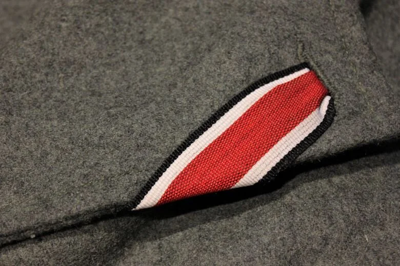 A working officer who will get into a container or railcar to ensure it is empty wears a Dienstanzug Model 1943 made of durable but breathable rayon fabric. The sole modification is the addition of sewn-in Schulterklappen. A set of unofficial Aufschiebeschklaufen embroidered with the cipher ‘L’ to match the universal Waffenfarben has been added.